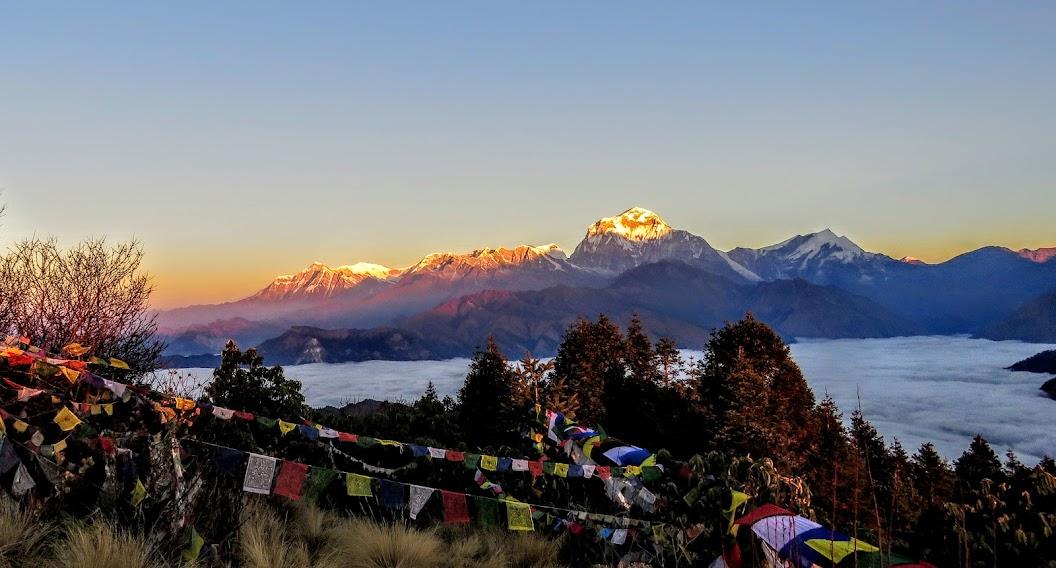 Watch the first rays of sunlight paint the Annapurna and Dhaulagiri ranges in gold — a view you won’t forget.